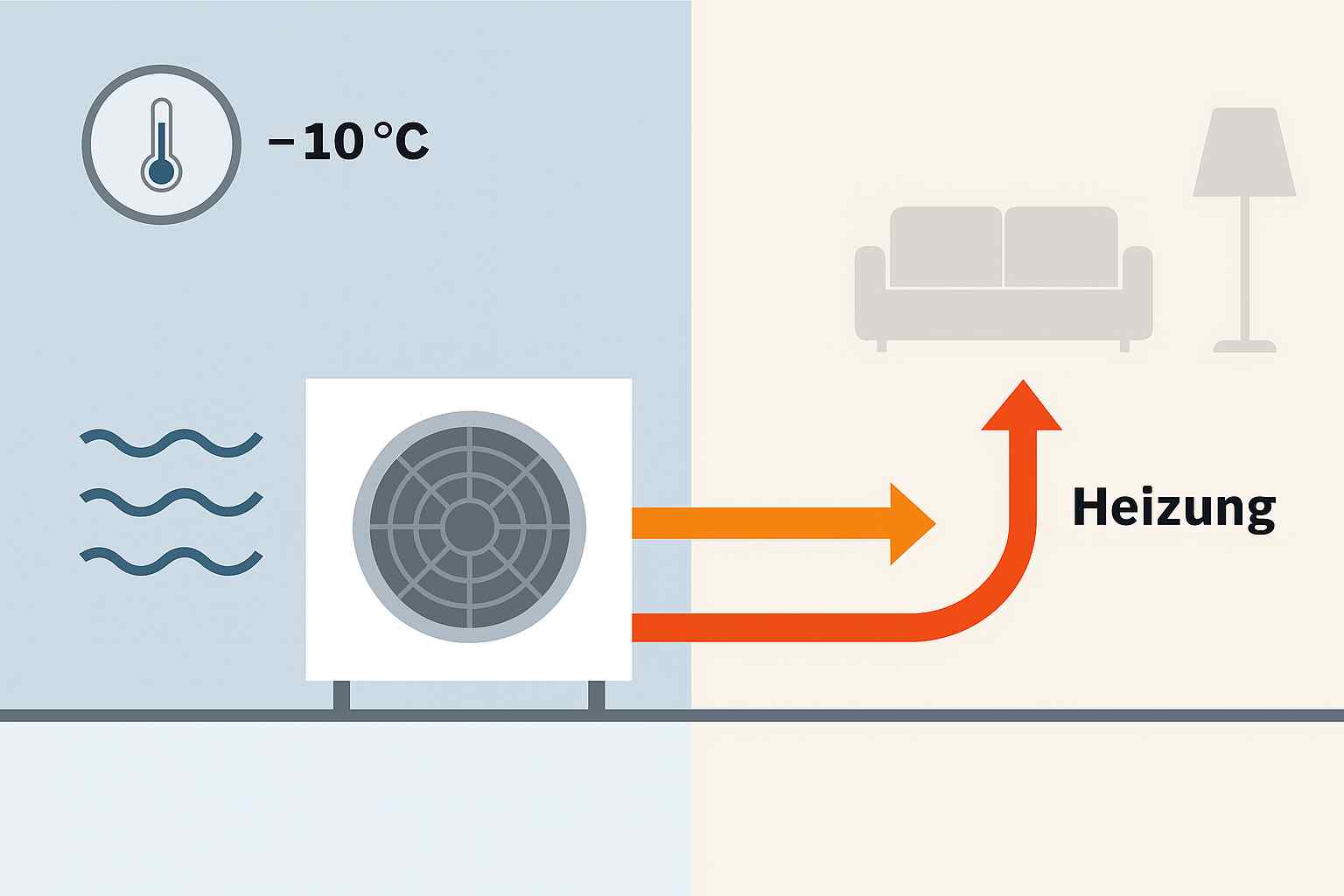 Selbst bei -15 °C enthält die Umgebungsluft noch thermische Energie. Die Wärmepumpe entzieht dieser kalten Luft weiterhin Wärme, wenn auch mit reduziertem Wirkungsgrad. Ein leistungsfähiger Verdampfer und ein optimierter Kältekreis sorgen dafür, dass die Anlage auch unter frostigen Bedingungen effizient läuft.