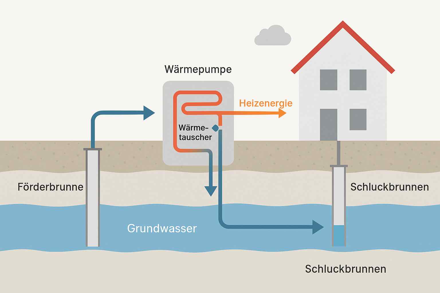 • Schluckbrunnen: In diesen wird das abgekühlte Wasser nach der Wärmenutzung wieder zurückgeleitet – ohne chemische Veränderung.